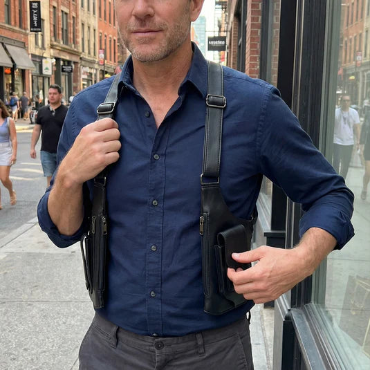 A refined, body-aligned system designed to eliminate pocket bulk and keep your essentials protected — without disrupting your silhouette.